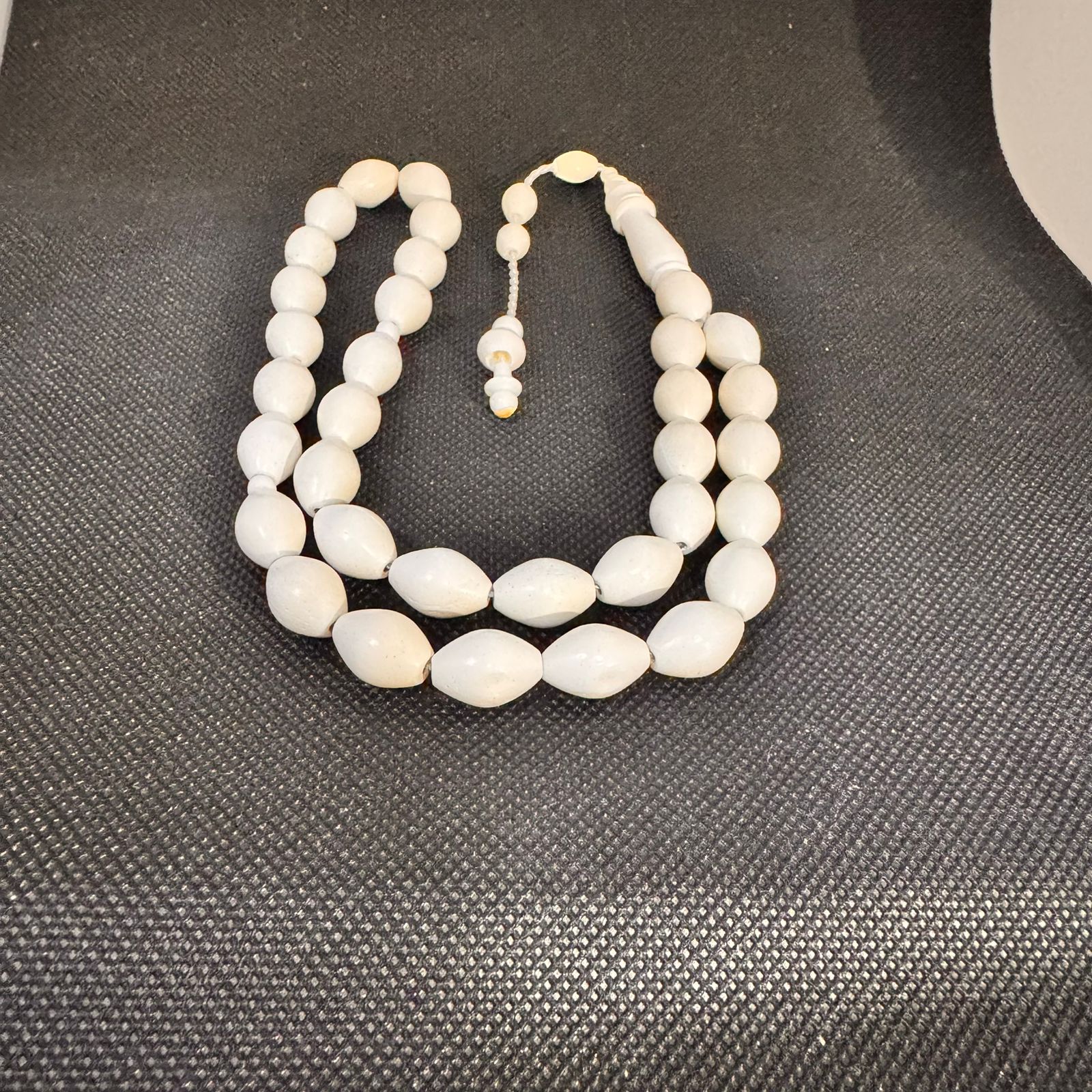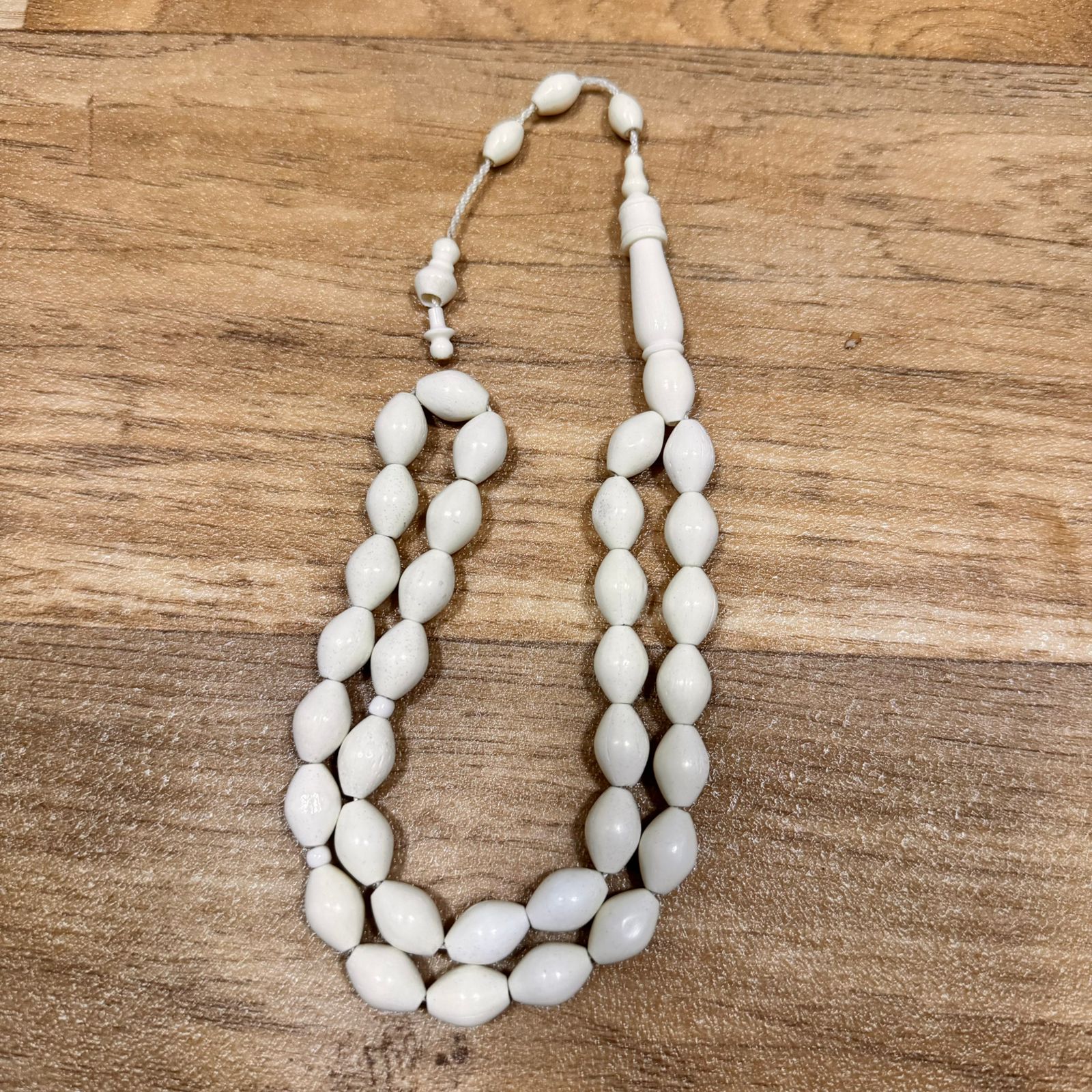 سبحة تقليدية مكوّنة من ثلاث وثلاثين خرزة تم تشكيلها وصقلها بعناية لتمنح ملمسًا ناعمًا ومريحًا أثناء الاستخدام. تتميز هذه السبحة بخفة وزنها وسهولة حملها، مما يجعلها مناسبة للاستخدام اليومي في الذكر والتسبيح، مع الحفاظ على الطابع التراثي الأصيل الذي يعكس روح البساطة والسكينة والطبيعة .