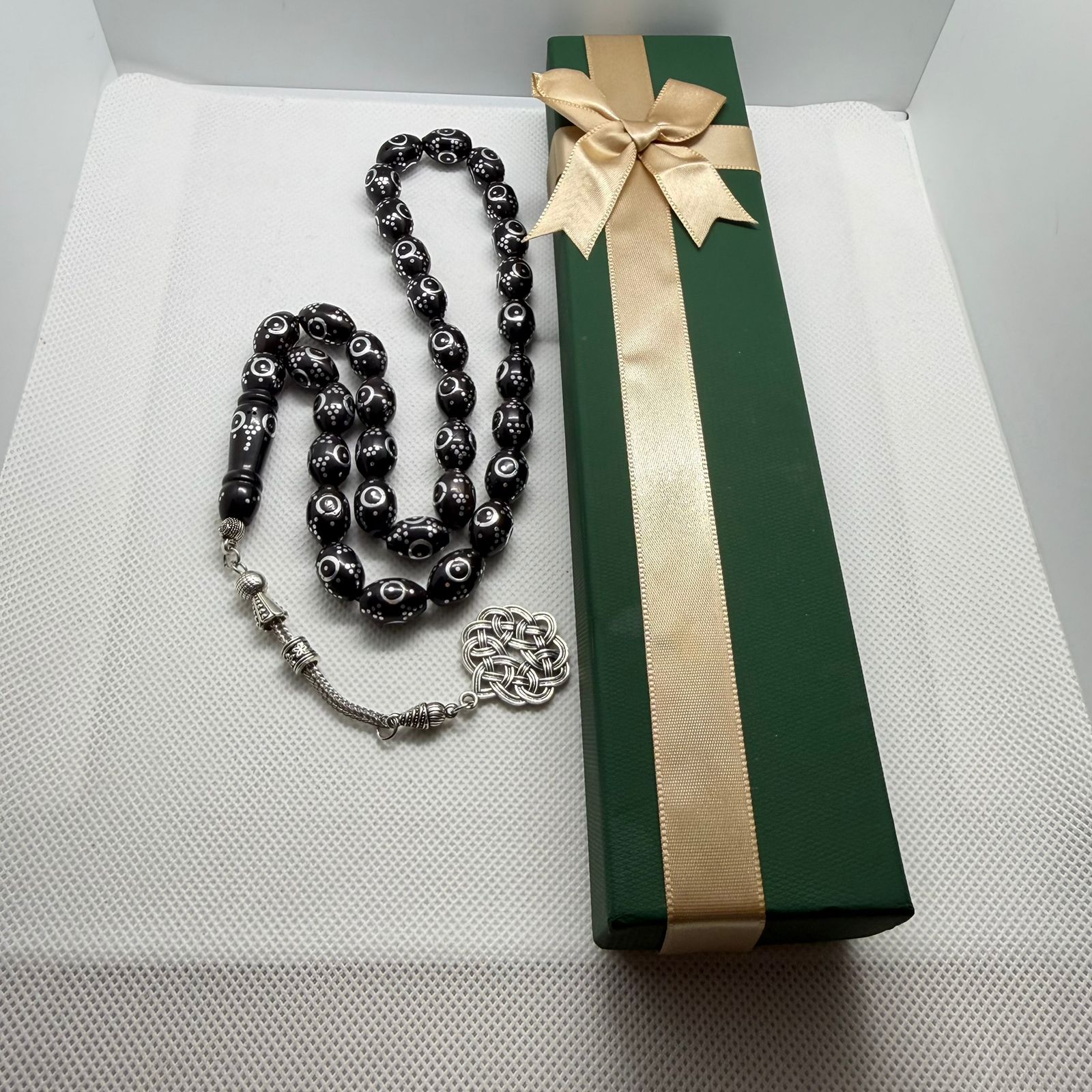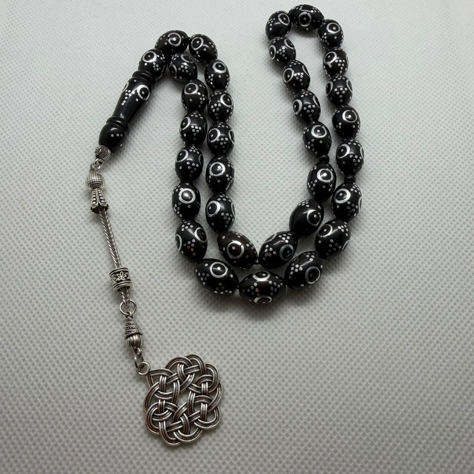 تتميز سبحة الكوك الداكن المنقوشة بكونها من أكثر السبح صبراً وجمالاً، فهي تُصنع من جوز نارجيل الهند (ثمار شجر الكوك) الذي يشتهر بصلابته وخفته مما يجعله مناسب للاستخدام اليومي العملي او التأمل او الإهداء