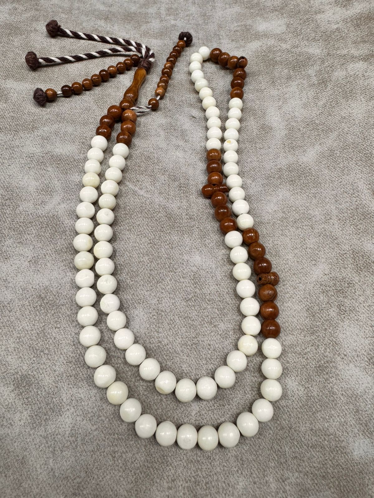 سبحة مميزة ورائعة عظم يتخللها خرزات كوك مما يجعلها سبحة بشكل فني رائع مكونة من 99 خرزة
