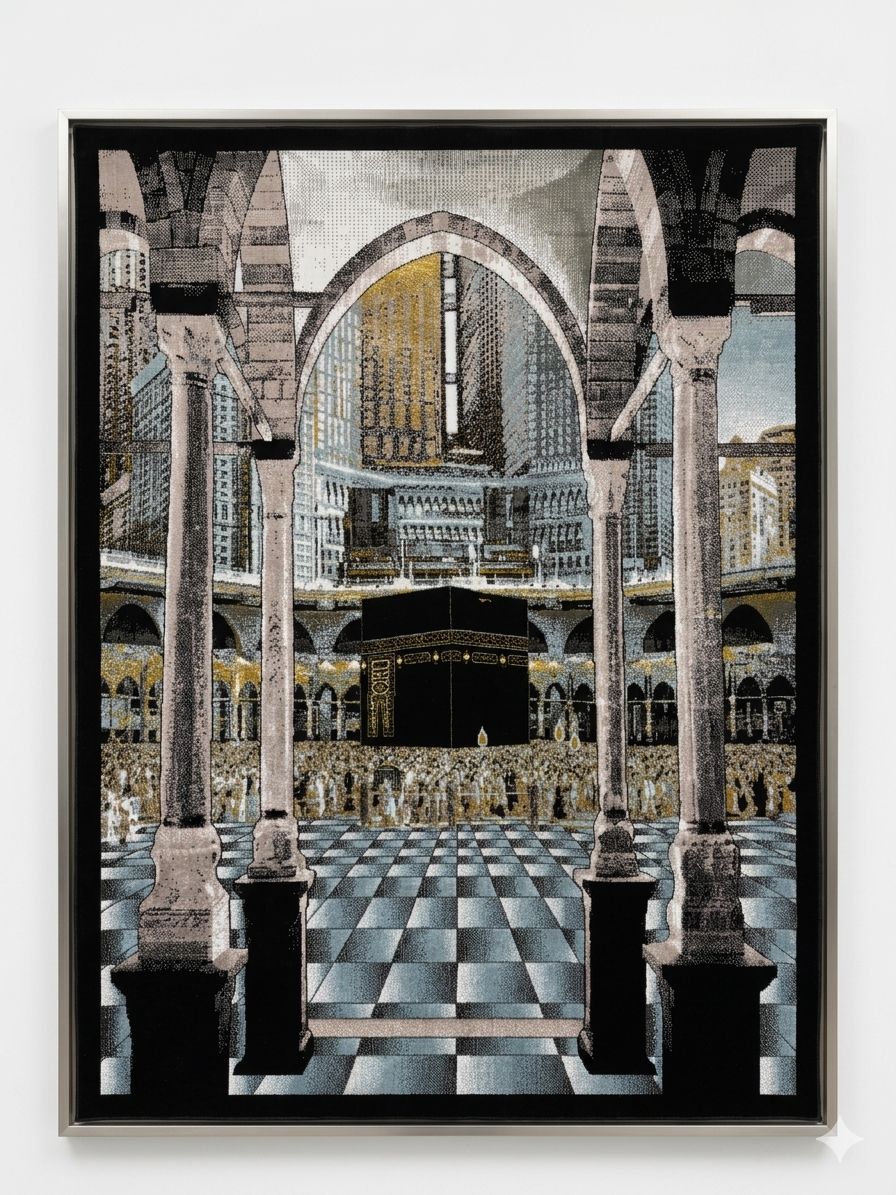 منظر مصنوع من افخر أنواع السجاد التركي حيث تجسد هذه السجادة الجدارية مشهداً روحانياً مهيباً للكعبة المشرفة داخل الحرم المكي، حيث تمتزج التفاصيل المعمارية الإسلامية بالألوان الهادئة لتخلق لوحة فنية تنبض بالجمال والسكينة. يظهر التصميم الأقواس الإسلامية والأعمدة الشامخة بإتقان، مع أرضية مزخرفة تعكس عمق المنظور، ما يمنح الشعور وكأنك تقف داخل الحرم الشريف. هذه القطعة بتقنية ال 3D مثالية لإضفاء لمسة إيمانية راقية على المنزل أو المصلى.