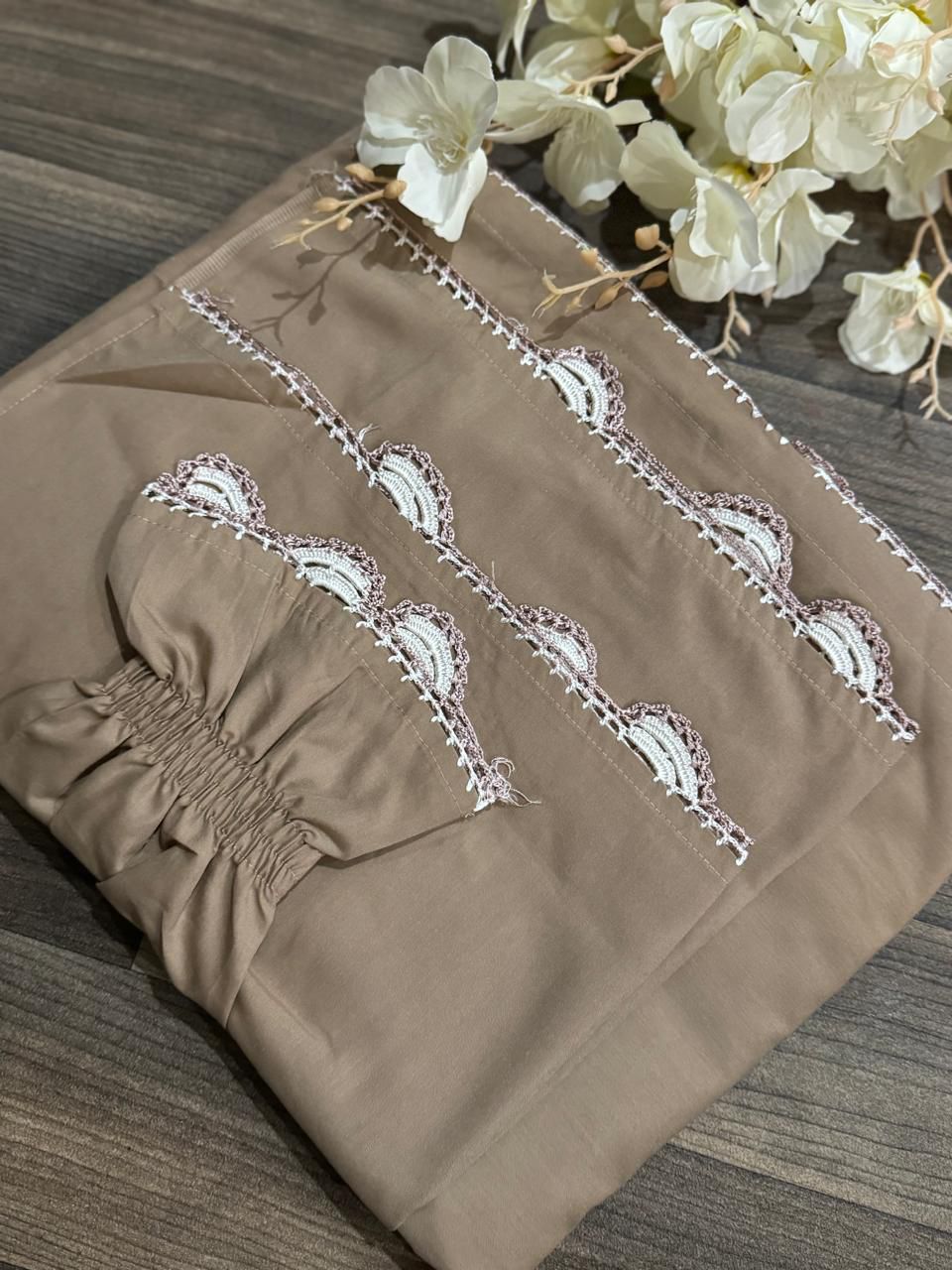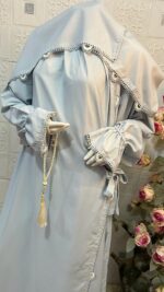 إسدال صلاة نسائي بتصميم محتشم وأنيق، مصنوع من قماش ناعم وخفيف وانسيابي يمنح راحة عالية أثناء الصلاة. يتميز بتطريز كروشيه (سنارة) يدوي فاخر يزين الحواف والأكمام بشكل متناسق ويضفي لمسة راقية ذات طابع تراثي هادئ. يأتي بغطاء رأس مدمج ومريح، مع أكمام واسعة مزودة برباط ناعم لتسهيل الحركة أثناء الصلاة. القماش غير شفاف وخفيف الوزن، مناسب للاستخدام اليومي، وكذلك للعمرة والحج، كما يسهل طيه وحمله. الإسدال بمقاس واحد يناسب معظم الأحجام، ويعد خيارًا مثاليًا كهدية فاخرة وأنيقة.