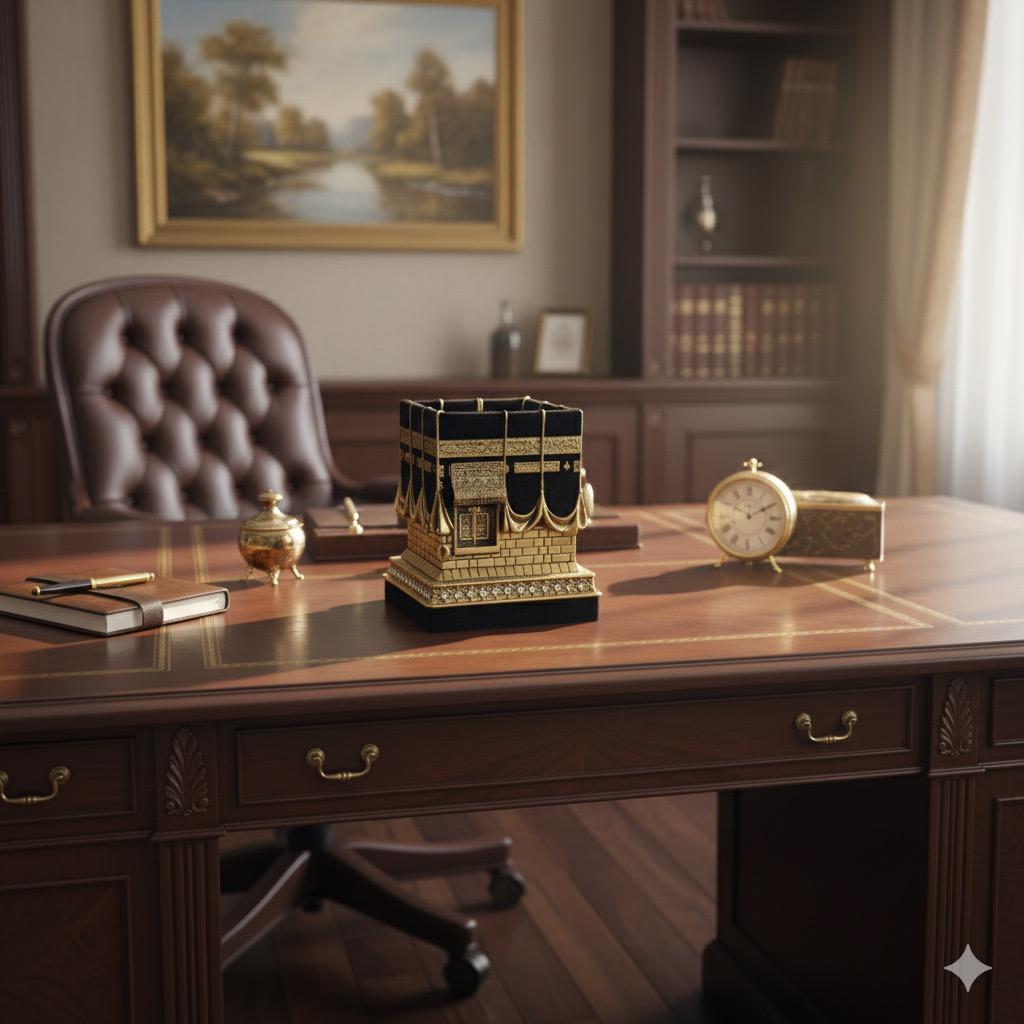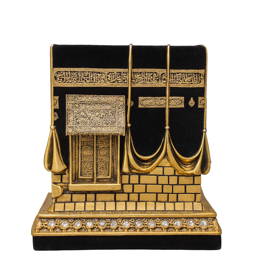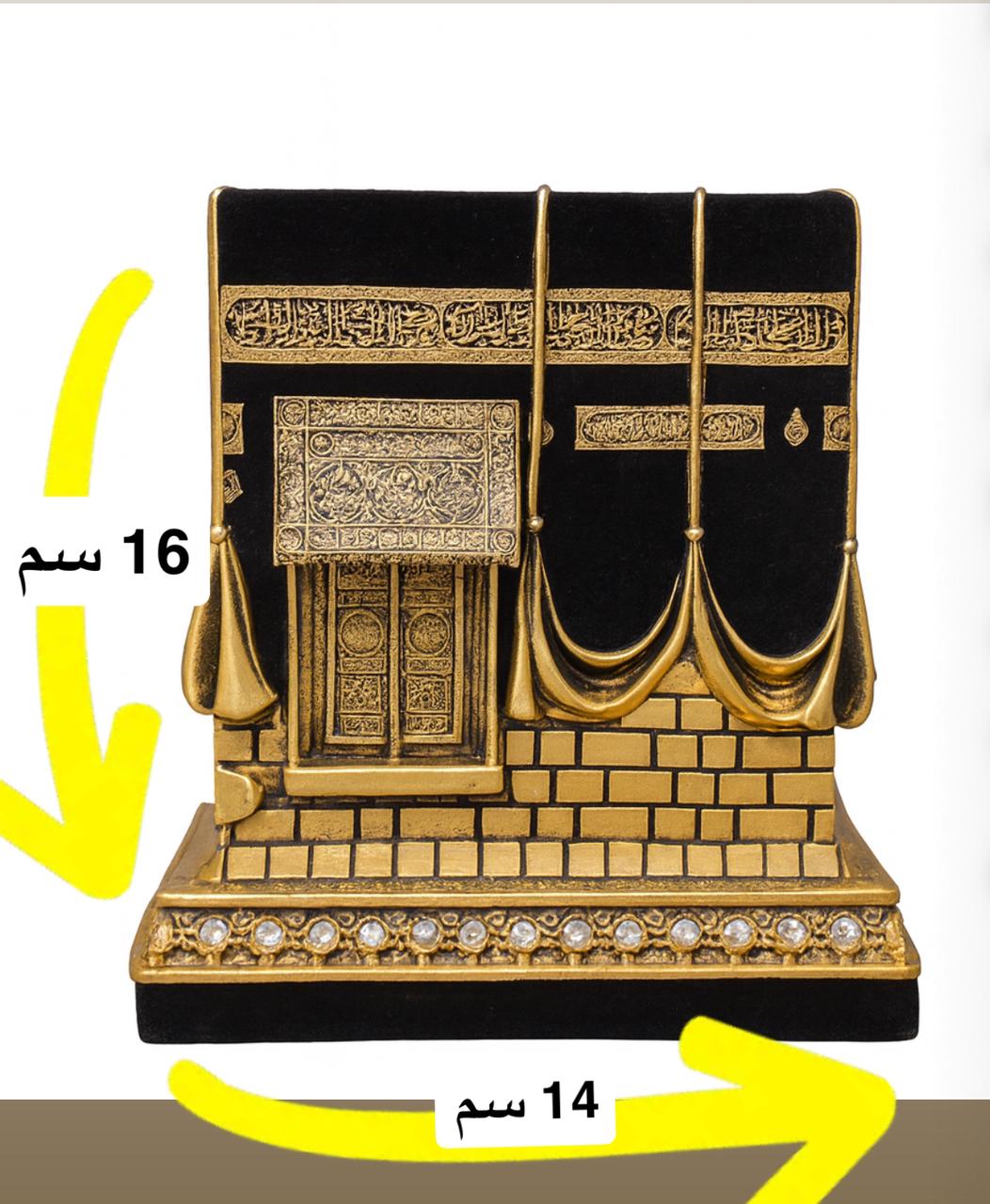 تم تصنيع هذه القطعة الفنية الرائعة بعناية واتقان من مادة الريزين المميزة وتلبيس اجزاء من الكعبة بقماش القطيفة الأسود .