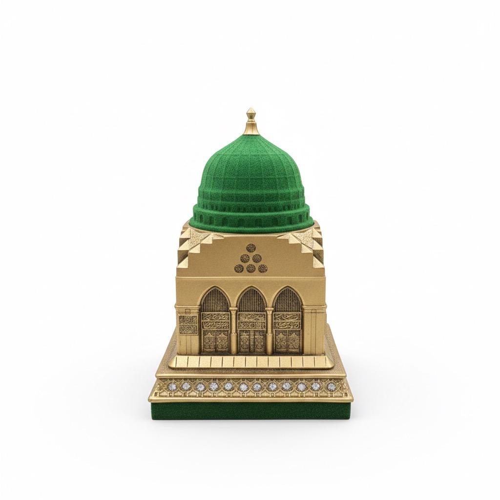 تم تصنيع هذه القطعة الفنية الرائعة بعناية واتقان من مادة الريزين المميزة وتلبيس اجزاء من القبة بقماش القطيفة الأخضر